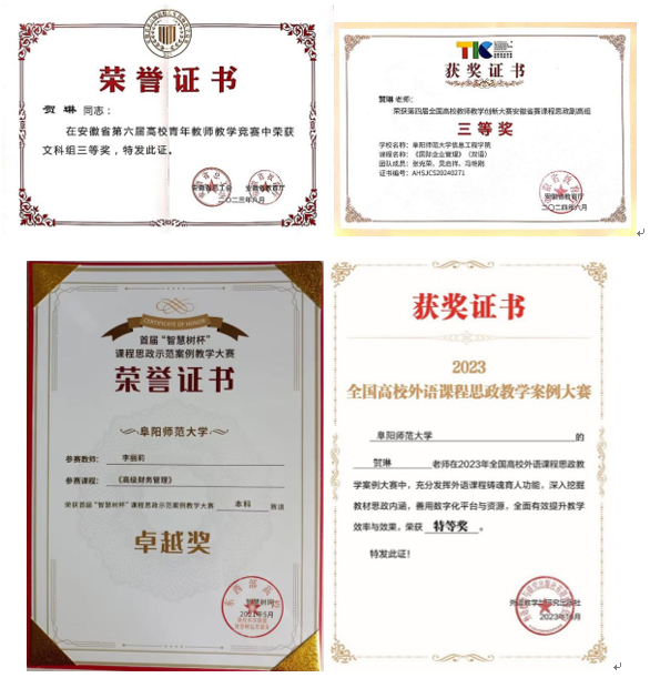 学院深入挖掘各类课程和教学方式中蕴含的思想政治教育资源,充分发挥教师队伍“主力军”、课程建设“主战场”、课堂教学“主渠道”的作用,以课程思政创新为抓手,以师德师风建设为重点,将价值塑造、知识传授和能力培养三者融为一体,构建全员全程全方位育人大格局。目前,省级课程思政示范课程4门、省级线上线下混合式课程3门、省级线下一流课程1门、省级双语示范课程1门、校级课程思政示范课程8门、校级课程思政优秀教学案例8项。