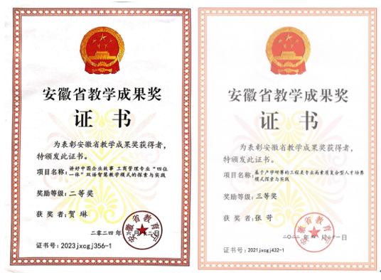 学院聚焦教师教学能力,不断提升师资队伍胜任力。近年,获国家级、省级及校级各类教学竞赛38人次,其中省级教学竞赛一等奖1人,二等奖2人,三等奖2人,校级一等奖3人。通过细化师资队伍管理,有效激发不同类别教师的工作积极性,现有“双师双能型”教师45人,占比超过40%,不断满足学生实践技能培养需求。近三年来,学院本科生就业率都在95%以上,获得就业、征兵、毕业论文指导、考风考纪等工作“先进单位”。