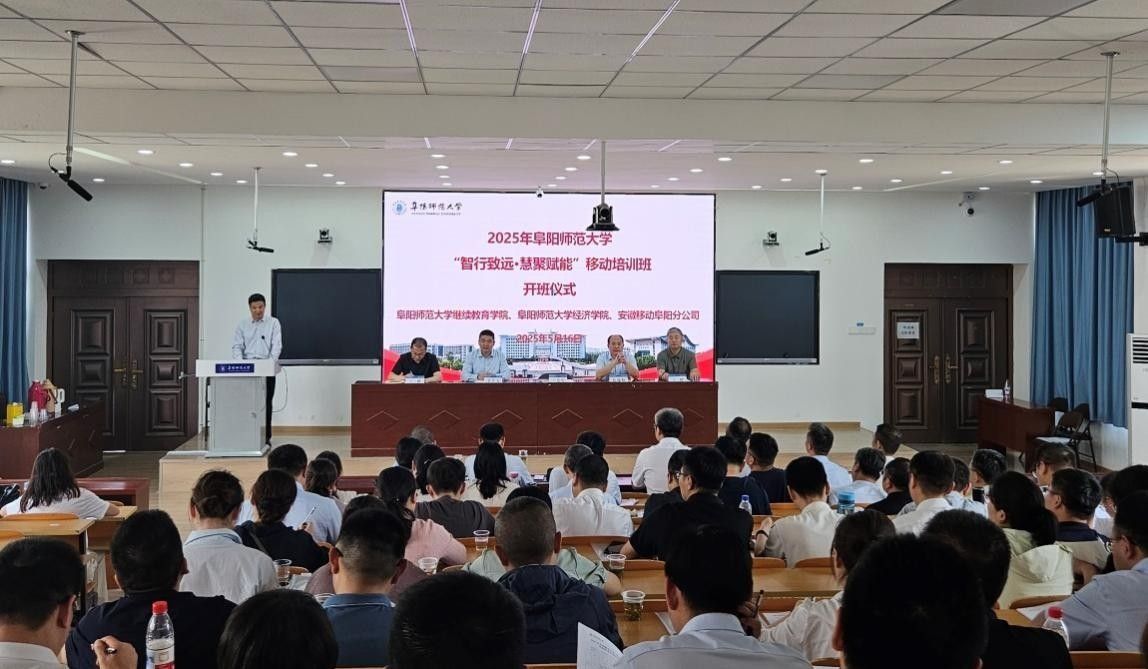 5月16日下午,“智行致远·慧聚赋能”移动公司培训班在我校开班。校党委常委、副校长王诗兵,中国移动阜阳分公司副总经理葛锡峰出席开班仪式。我校经济学院、继续教育学院有关负责人及阜阳移动分公司综合部、人力资源部、财务部等部门学员参加开班仪式。开班仪式由继续教育学院院长王健主持。