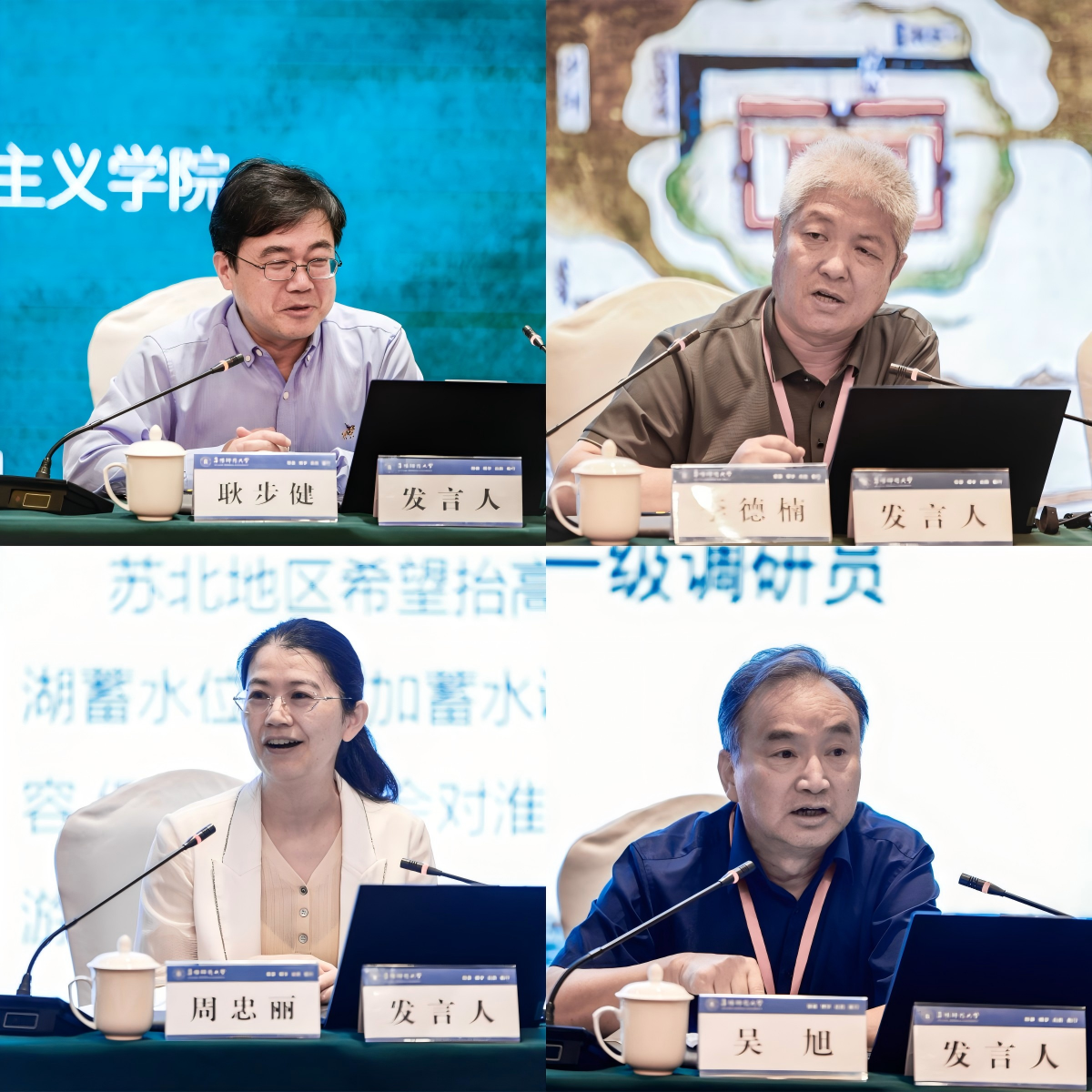 主题报告分两个阶段进行。第一阶段由阜阳师范大学马克思主义学院院长朱宗友教授主持。上海师范大学马克思主义学院副院长耿步健教授、淮阴师范学院历史文化旅游学院李德楠教授、河海大学马克思主义学院周忠丽教授、淮河水利委员会原水旱灾害防御处一级调研员吴旭分别围绕“弘扬新时代治淮精神,促进人与水和谐共生”“1950年代的洪泽湖归江入海工程建设及其启示”“基于政府间协商的边界水利纠纷治理实践及启示——以洪泽湖水量调蓄问题为中心的考察”“治淮之光——佛子岭的科学家精神”等问题进行了主题发言。