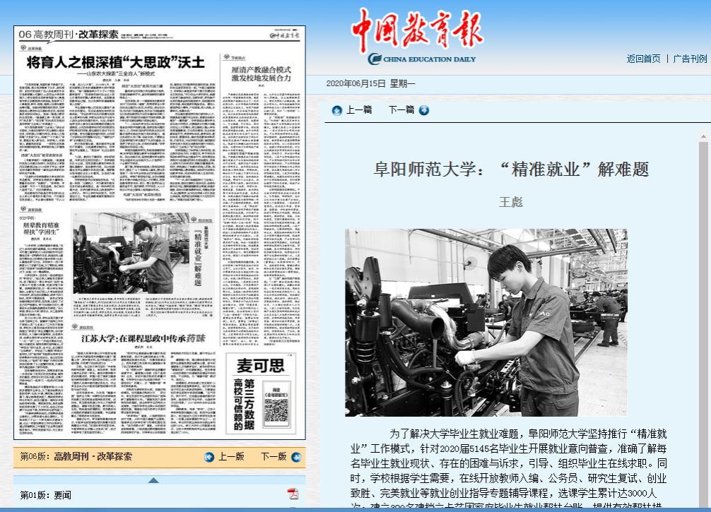 学校招生就业工作始终高点站位、总体部署,实施“招生、培养、就业”一体化战略工程,动态调整招生计划,持续优化生源结构,坚持质量、规模、效益的协调发展,全面服务于学校的改革与发展需求。学校招生态势持续向好,生源质量优化升级。自2019年起,我校部分本科专业进入一批次录取,至2020年全部专业实现一批次招生。招生计划完成率100%,报到率稳定在99%以上,招生专业紧密围绕学校发展目标不断优化调整,展现出稳健的发展态势,报考及录取情况均优于本年度省内同质同类高校。省外录取的考生均超过当地录取分数线,生源质量得到稳步提升。建立健全“互联网+”云招生宣传模式,不断打造线上线下互动立体化招生宣传平台,累计开展 “院长说学院”“专家说专业”等直播宣讲30多场,观看量近7万人次,运用“阜阳师范大学”公众号推广全部专业介绍,单篇阅读达上万人次。组织培训、外派教师100余人次深入省内百余所中学,参加高招会、高考巡考、招生推介会等160余场次,持续打造阜师大品牌,讲好阜师大故事,提升学校品牌影响力。