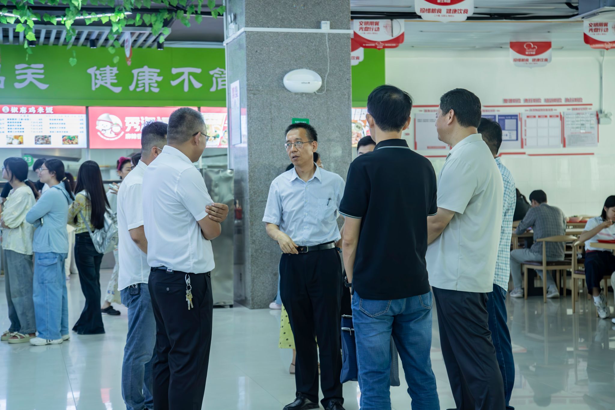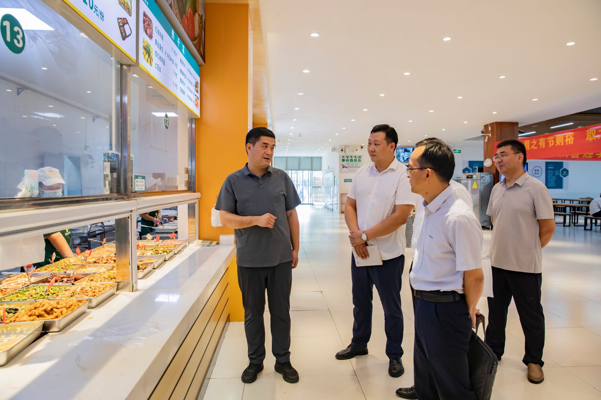 期间,校领导还走进西湖校区三里桥校园食堂、西湖校区一区怡香园食堂和二区学生食堂以及清河校区东清苑、西清苑食堂,详细了解食品安全卫生以及食堂运营保障情况等。并来到学生生活和活动配套场所,实地查看校园环境综合治理情况、在建工地及维修维护项目进展情况、重点区域安全隐患排查整治情况、后勤服务保障情况等。