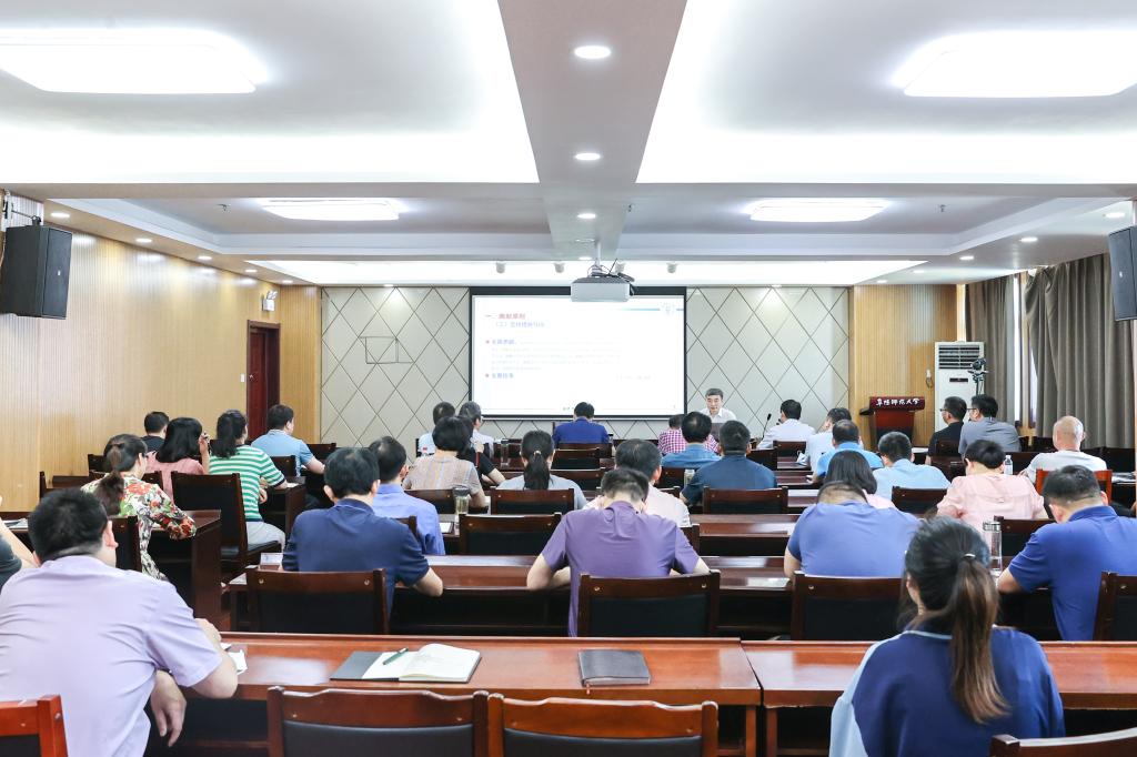 会议邀请发展规划处处长马同富作阜阳师范大学“十四五”发展规划纲要宣讲报告。宣讲报告从编制原则、规划体系、编制程序、规划架构、主要内容等五个方面对学校“十四五”发展规划纲要进行了系统解读。宣传报告主题鲜明、内容丰富,重点突出、资料翔实,联系实际,具有很强的政策性、理论性、实践性、指导性,进一步增强了与会人员学习贯彻落实“十四五”发展规划纲要的思想自觉和行动自觉。