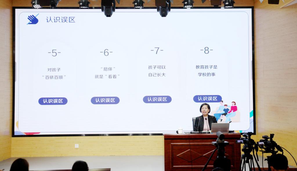 高家芳就“如何爱孩子”这一话题,与家长们展开互动交流,站在依法带儿童的高度,用一个个真实生动的案例,解答了家庭教育中的八个误区,从“永远把孩子的身心健康放在第一位”、“努力营造和谐温馨的家庭氛围”、“做孩子行为习惯的养成师”、“和孩子成为学习的共同体”、“做孩子兴趣的合伙人”、“做孩子成长的领航员”、“成为孩子人生的好榜样”等七个方面给家长们提出了中肯的建议,分享了自己家庭教育的感悟。高家芳的报告有理论、有方法、有温度、有深度,为家庭教育指明了方向。