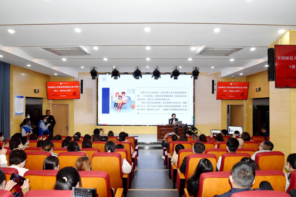 为贯彻落实《中华人民共和国家庭教育促进法》,引导广大家长尊重家庭教育规律,更新育儿观念,增进家校协同共育,助力孩子健康成长,由阜阳市妇女联合会主办,阜阳师范大学教育集团承办的家教公益讲堂于3月8日下午在求真楼报告厅举行。教育集团总经理、附属中学校长高家芳做了题为《孩子,我该怎么爱你》的精彩讲座。现场及各学校视频分会场近两千名学生家长,线上一千多名观众聆听了讲座。教育集团(附属中学)政教处主任年明点主持讲座。