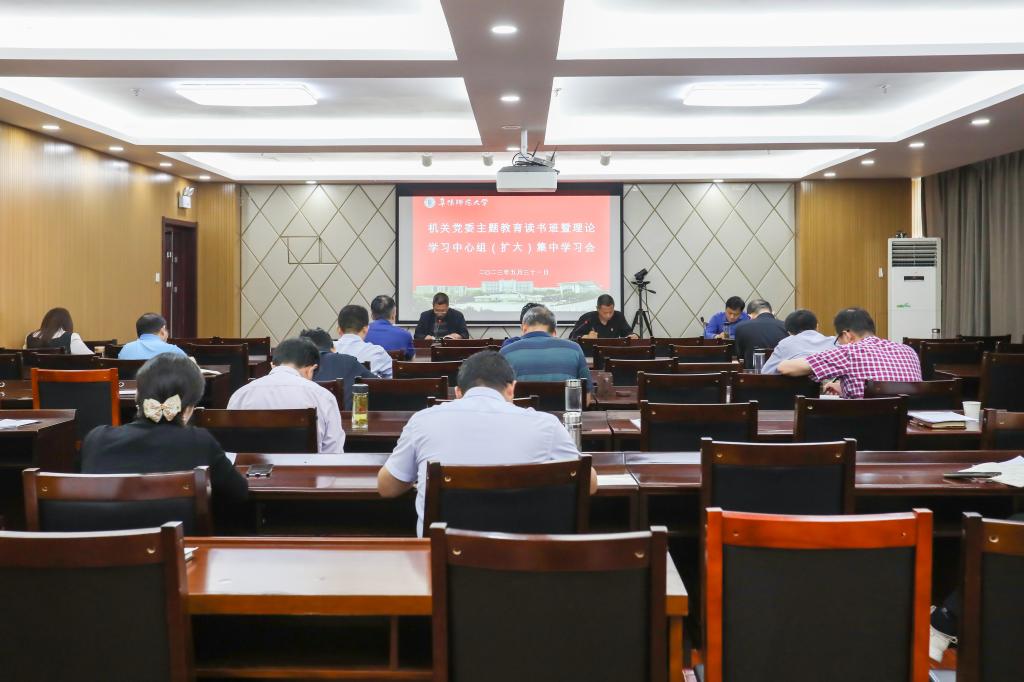 为进一步推进机关党委主题教育,深入学习贯彻习近平总书记关于教育的重要论述、系列重要讲话、重要指示批示精神以及习近平总书记关于教育科技人才工作的重要论述精神,5月31日下午,机关党委举办主题教育读书班暨理论学习中心组(扩大)集中学习会。人事处处长卢少求到会指导,机关党委班子成员、机关党支部书记参加会议,机关党委书记辛卫民主持会议。