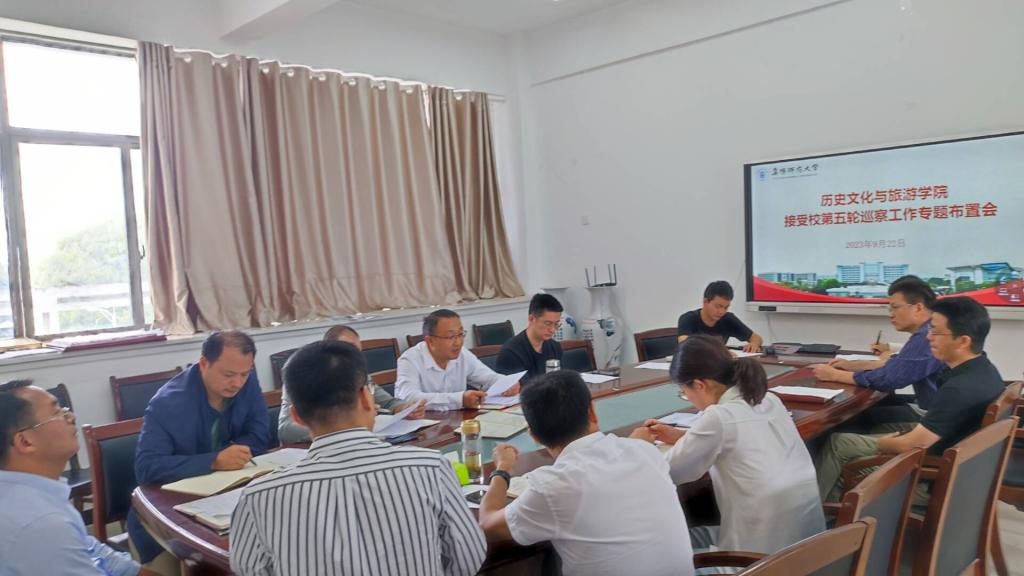 9月22日上午,历史文化与旅游学院召开接受学校党委第五轮巡察工作专题布置会,学院班子成员、党委委员、科级干部、教研室主任、专兼职辅导员等参加会议,会议由学院党委书记吴磊主持。