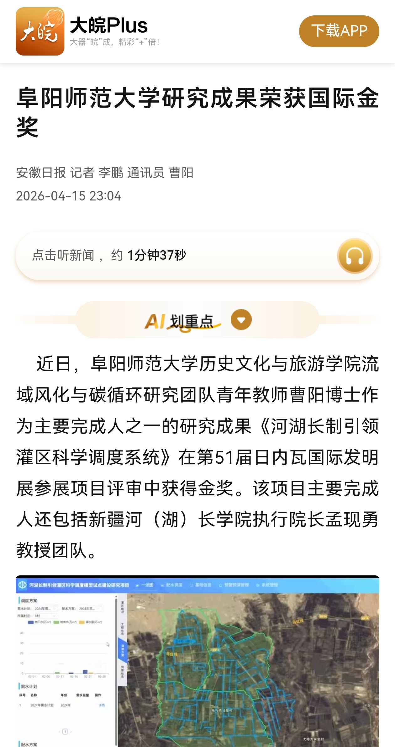 大皖Plus客户端报道:阜阳师范大学研究成果荣获国际金奖