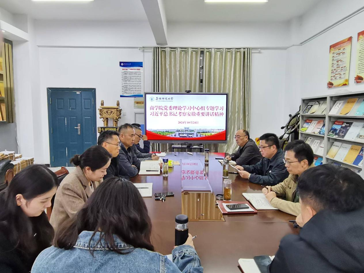 10月24日下午,商学院召开党委理论学习中心组2024年第10次集中学习会,专题学习习近平总书记考察安徽重要讲话精神。学院党委委员、各党支部书记及群团组织负责人参加会议,会议由学院党委书记宋东锋主持。