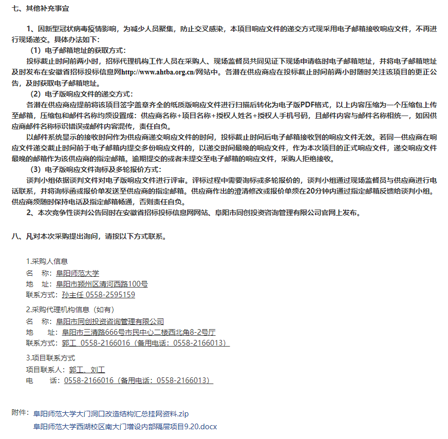 阜阳师范大学西湖校区南大门增设内部隔层项目竞争性谈判公告