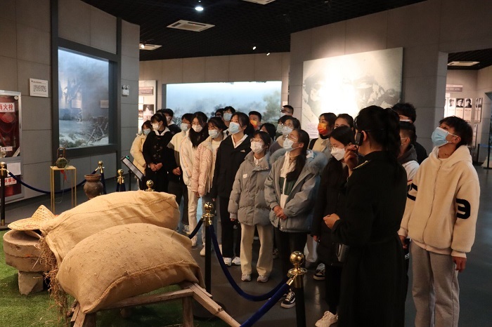 活动当天,伴随着破晓的晨光,同学们在烈士纪念碑前默哀,默哀现场一片肃静,表达了同学们对于先烈的敬仰。在讲解员带领下,同学们进馆参观,看着眼前一件件文物,仿佛置身于那段艰苦卓绝的年代,爱国之情油然而生,激励着经济学院学子们立志报效祖国的远大志向。