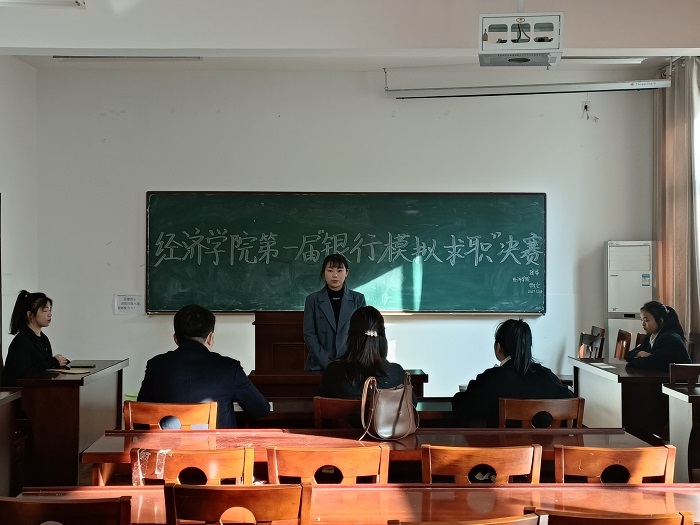为使学生对应聘银行职位有更为直观的认识,切实掌握银行求职面试的程序及技巧,提高未来求职的竞争力,经济学院于12月4日在清河校区举办了第一届“银行模拟求职”大赛。经过初赛的激烈角逐,共有15位选手闯入决赛。阜南农商行龙王支行行长宁可、经济学院王珊珊老师和团委负责人关欣雨担任决赛评委。