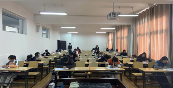 此次初赛以考试形式进行。工作人员为了活动的顺利举办进行了充分的赛前准备,咨询银行从业人员相关问题,赛前到所负责教室粘贴座位号,布置考场等等。比赛当天,各位参赛选手进行趣拓签到,随后由主考官宣布考试规则内容,监考人员分发试卷。比赛进行时,监考人员认真负责,参赛选手仔细答题;考试期间参赛选手将手机关机或开启静音模式,并将手机倒扣放置桌面左上角。各位参赛选手严格遵守比赛规则,诚信考试,规范答题,第一届“银行模拟求职”大赛初赛圆满落幕。