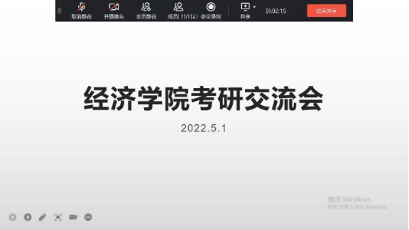 为进一步加强同学们对研究生入学考试的认识,了解前沿的就业形势、增考研斗志。经济学院于5月1日晚上七点举办了线上“考研交流会”。参与本次活动的有19级、20级、21级全日制在校本科生。