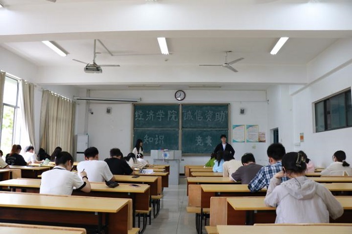 资助感恩情,金融征信知识竞赛。为使学生更多地了解国家助学贷款资助政策,普及征信、金融等相关知识,有效将诚信教育转化为大学生自觉的素养与行为,5月27日,经济学院于西湖校区汉风A楼与清河校区唯真楼同步举办金融征信知识竞赛。赛前,学生积极查阅资助知识相关资料,如助学贷款、征信机构、信用报告、民间信贷等,为知识竞赛做好了充足的准备,达到了“以赛助学”目标,进一步强化了资助育人效果。