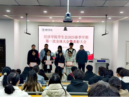 3月12日下午,经济学院学生会2025年春季学期第一次全体大会暨表彰大会在清河校区主楼319教室隆重举行。学院党委副书记孟继超、团委负责老师解进飞以及全体学生会成员出席了本次大会。