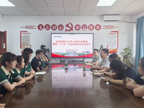 为深入学习贯彻习近平新时代中国特色社会主义思想,引领青年学子在社会大课堂中受教育、长才干、作贡献,6月27日,经济学院2025年大学生志愿者暑期“三下乡”社会实践活动出征仪式在清河校区举行。学院党委书记房厚信、实践团队代表齐聚一堂,仪式由学院团委负责人解进飞主持。
