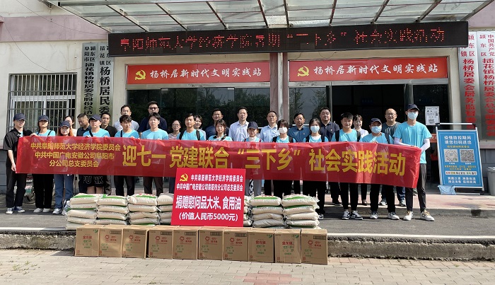为深入学习贯彻习近平新时代中国特色社会主义思想,引导和帮助广大青年在社会课堂中“受教育、长才干、作贡献”,坚定信念听党话、跟党走,迎接党的二十大胜利召开,经济学院围绕专业特色,积极响应党的号召,开展喜迎党的二十大暑期“三下乡”活动。6月30日,经济学院组织学生前往颍东区插花镇杨桥居、颍州区京九办事处龙王店村开展暑期“三下乡”社会实践活动。经济学院党委书记房厚信、校团委挂职副书记戎强强、杨桥居第一书记徐进超、龙王店村第一书记陈超和经济学院团委负责人关欣雨等参加活动。
