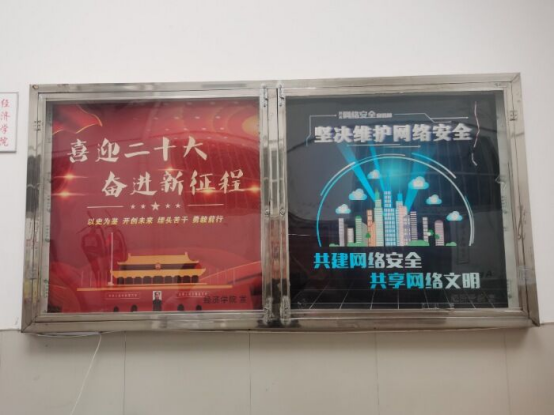加大宣传力度,落实全民参与。在本次“国家网络安全宣传周”期间,经济学院通过官方QQ、橱窗海报、微信公众号等多种形式进行全方位的网络安全教育宣传,让网络安全渗入学生学习和生活的方方面面,提醒学生在日常中更要谨防网络陷阱,确保个人的信息安全。在多途径的宣传下,网络安全教育成功覆盖到全体师生,促使广大学生对网络安全有了进一步的认识,增强了网络安全防范意识和对个人信息的保护意识,提醒学生谨防电信诈骗,强化数据安全防护,共筑网络安全防线。