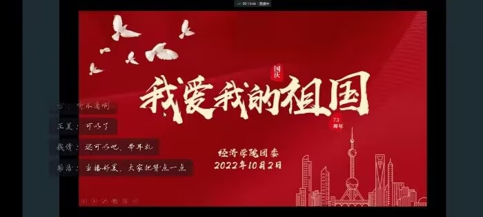 为庆祝中华人民共和国成立73周年,激发团员青年们的爱国情怀,进一步加强疫情防控宣传教育,10月2日,经济学院团委通过钉钉会议召开“我爱我的祖国”主题宣讲会。经济学院团务组成员李娟主持会议,2022级各班团员参加了宣讲活动。