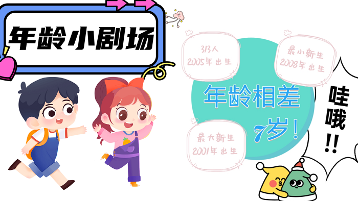 年龄小剧场。萌新们最大是2001年出生,最小为2008年,新世纪的开头和奥运之年的奇妙相遇,期待在未来的学习生活要彼此照顾共同进步!
