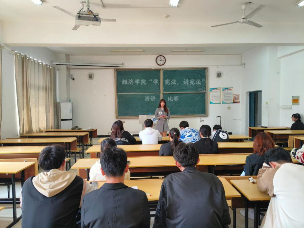 “学宪法讲宪法”主题演讲比赛。11月9日,经济学院举办“学宪法讲宪法”主题的演讲比赛。参赛选手们紧紧围绕习近平法治思想,宪法与国家、宪法与社会、宪法与个人等主题,结合典型案例以及日常实际畅谈了对宪法精神、宪法原则、宪法知识和宪法实践的认识和理解,表达了对宪法的尊崇和敬畏之情。经过激烈角逐,22级电子商务1班的程卉脱颖而出,荣获第一名。