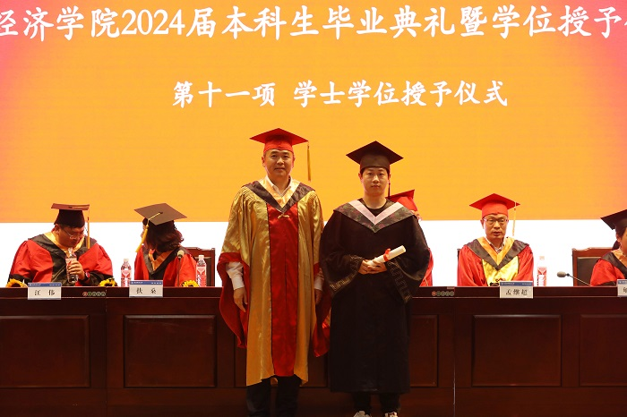 5月19日下午,经济学院2024届毕业典礼暨学位授予仪式在西湖校区正行楼二楼报告厅隆重举行。学院党委书记房厚信、院长余许友、校友代表、毕业班辅导员、教师、学生家长代表与2024届毕业生等共同出席本次典礼。学院党委副书记孟继超主持典礼仪式。