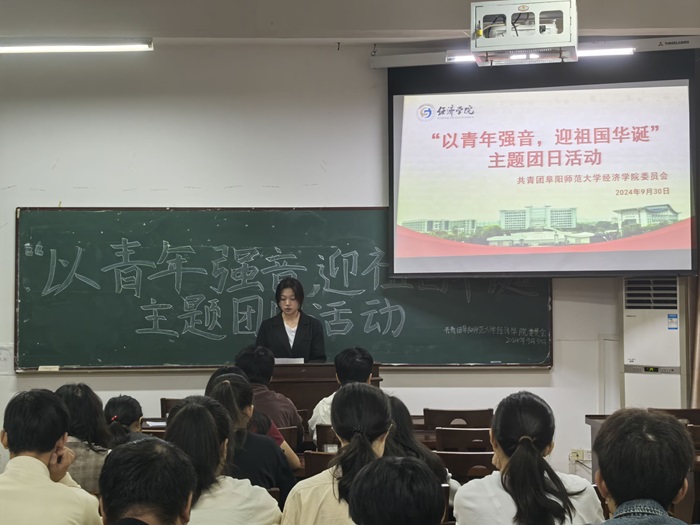 开展一次主题团日活动。活动以“以青年强音,迎祖国华诞”为主题,在庄严的国歌声中拉开序幕。活动中,青年讲师团成员详细介绍了国庆节的由来和意义,与同学们一起回忆峥嵘岁月中的青年力量,激励同学们奋发图强、挺膺担当,活动在重温入团誓词中结束,增强了同学们的民族自豪感和责任感。