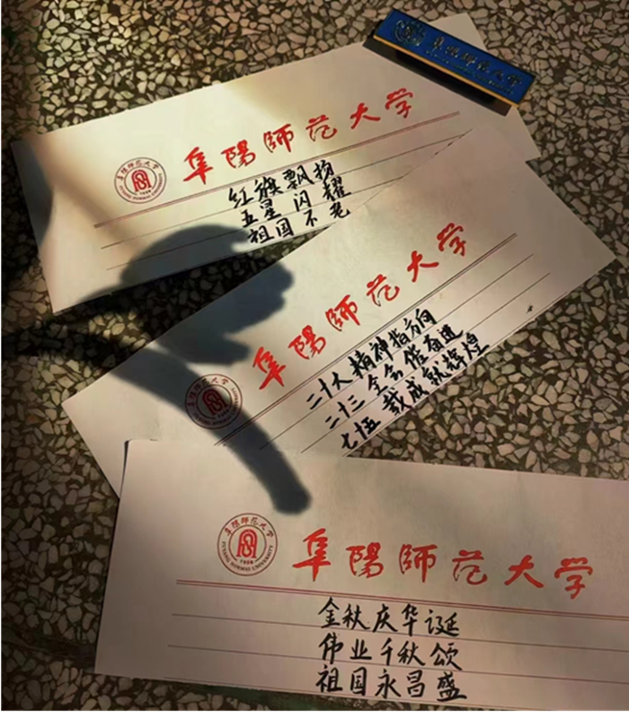 书写一封爱国情书。为向祖国表达最真挚的祝福和热爱,学院发起题为“国庆情,三行颂”的征集活动。同学们文思泉涌、挥毫泼墨,言语或热烈或深沉、或豪迈或细腻,用三行诗的形式,向祖国母亲诉说了心中的敬爱与祝福,让爱国之情在字里行间流淌。