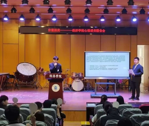 情系心理,价值拍卖。5月25日,经济学院心理委员联合会开展“情系心理,价值拍卖”主题活动。活动中,各参赛者热情洋溢,积极参与“赛前答题”环节赢取额外资金奖励;拍卖环节各显其能,参赛者明确了合理规划资金使用的重要性,树立了“投资需谨慎”的理念,增强了风险防范意识。本次拍卖活动有效地将心理健康活动与学科专业相结合,突显了专业特色,提高了同学们专业学习、自我认知能力,同时也使学生们更加明晰了自身的需求和价值观,既充实了他们的课外生活,也有助于缓解学业压力。