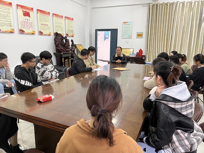 10月21日下午,经济学院2022届毕业生座谈会在汉风B楼323室召开,经济学院毕业班辅导员赵灯峰、就业指导员李雪艳以及毕业生代表参加会议。