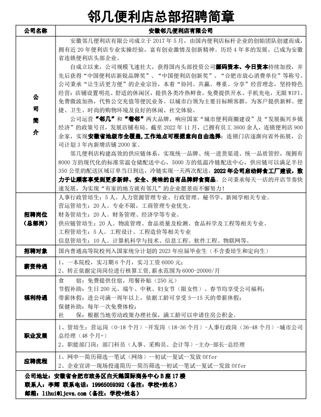 领几便利店总部招聘简章