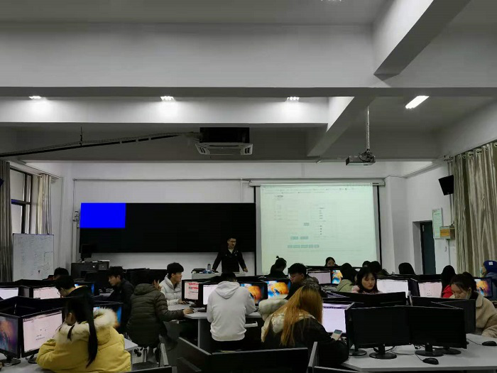 为提高金融工程专业学生的实践技能,2020年12月1日上午,经济学院2019级金融工程1、2班学生,在欧喜操老师的带领下在文科实训楼403实验室开展证券投资模拟专业见习活动。