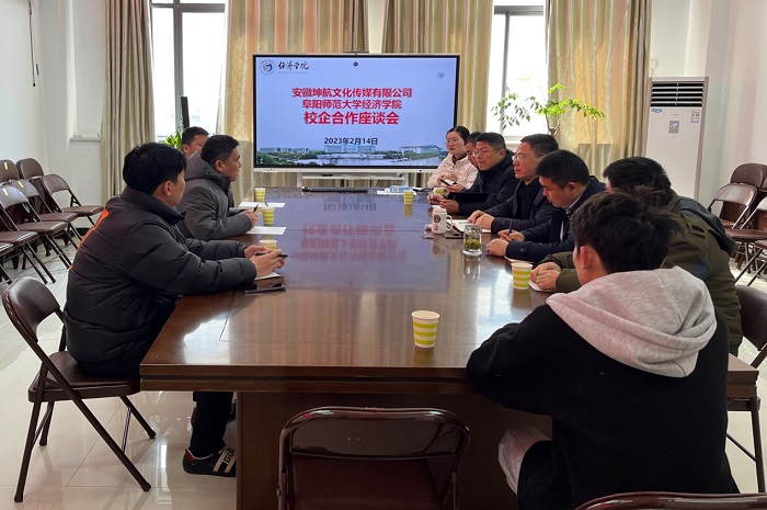 为深化校企合作,切实提高应用型人才的培养质量,2月14日,安徽坤航文化传媒有限公司董事长闫军一行莅临经济学院洽谈校企合作。经济学院党委书记房厚信、副院长余许友等接待了闫军一行,双方就加强合作事宜进行了座谈。