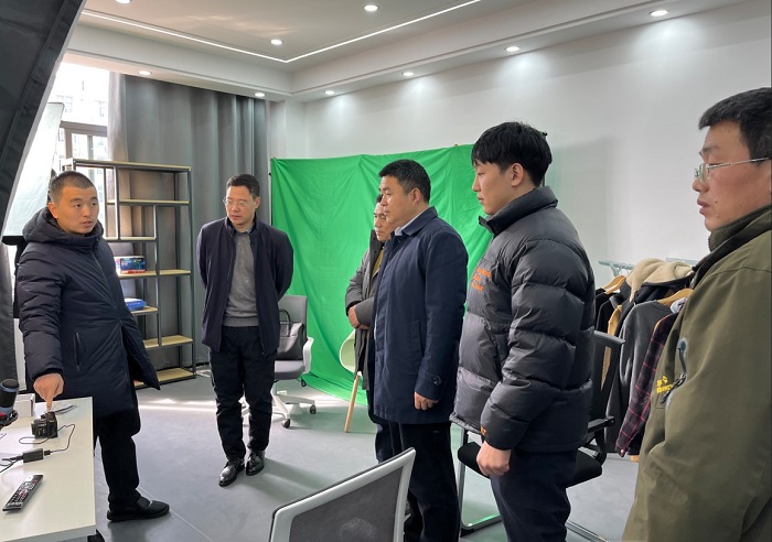 会后,闫军一行实地参观了学院与阜阳广电合作共建的乡村振兴电商直播室。