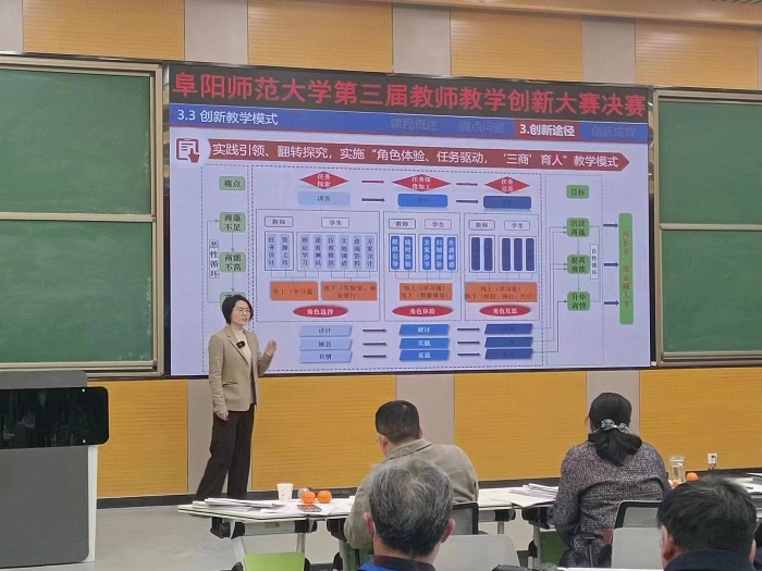 近日,在刚刚结束的学校第三届教师教学创新大赛中,我院兰冲锋教授教学团队和王东东讲师教学团队经过激烈角逐,以优异成绩双双斩获校级一等奖,再创我院教师在教师教学创新大赛中新佳绩。同时,我院青年教师王姗姗和方园教学团队荣获二等奖,宋洒洒、田申和吴丽媛教学团队获校级优胜奖。兰冲锋和王东东团队被学校推荐参加安徽省第三届教师教学创新大赛。