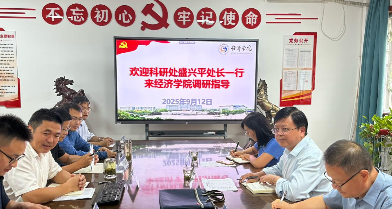 9月12日上午,科研处处长盛兴平、副处长魏遥等一行3人到经济学院开展科研工作专题调研与指导。经济学院院长余许友、副院长兰冲锋以及学院科研骨干教师代表参加了座谈交流。