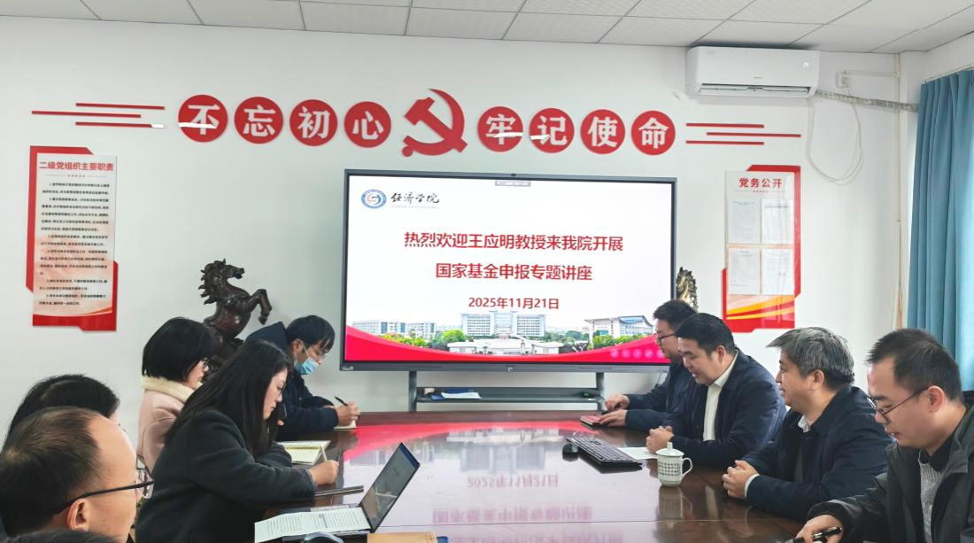 为做好国家基金项目申报工作,提升教师科研项目申报质量与成功率,11月21日,学院特邀教育部“长江学者”特聘教授、国家杰出青年科学基金获得者王应明教授来校开展国家基金项目申报专题指导。经济学院院长余许友及科研工作负责人、学院全体青年教师参加此次指导交流会。