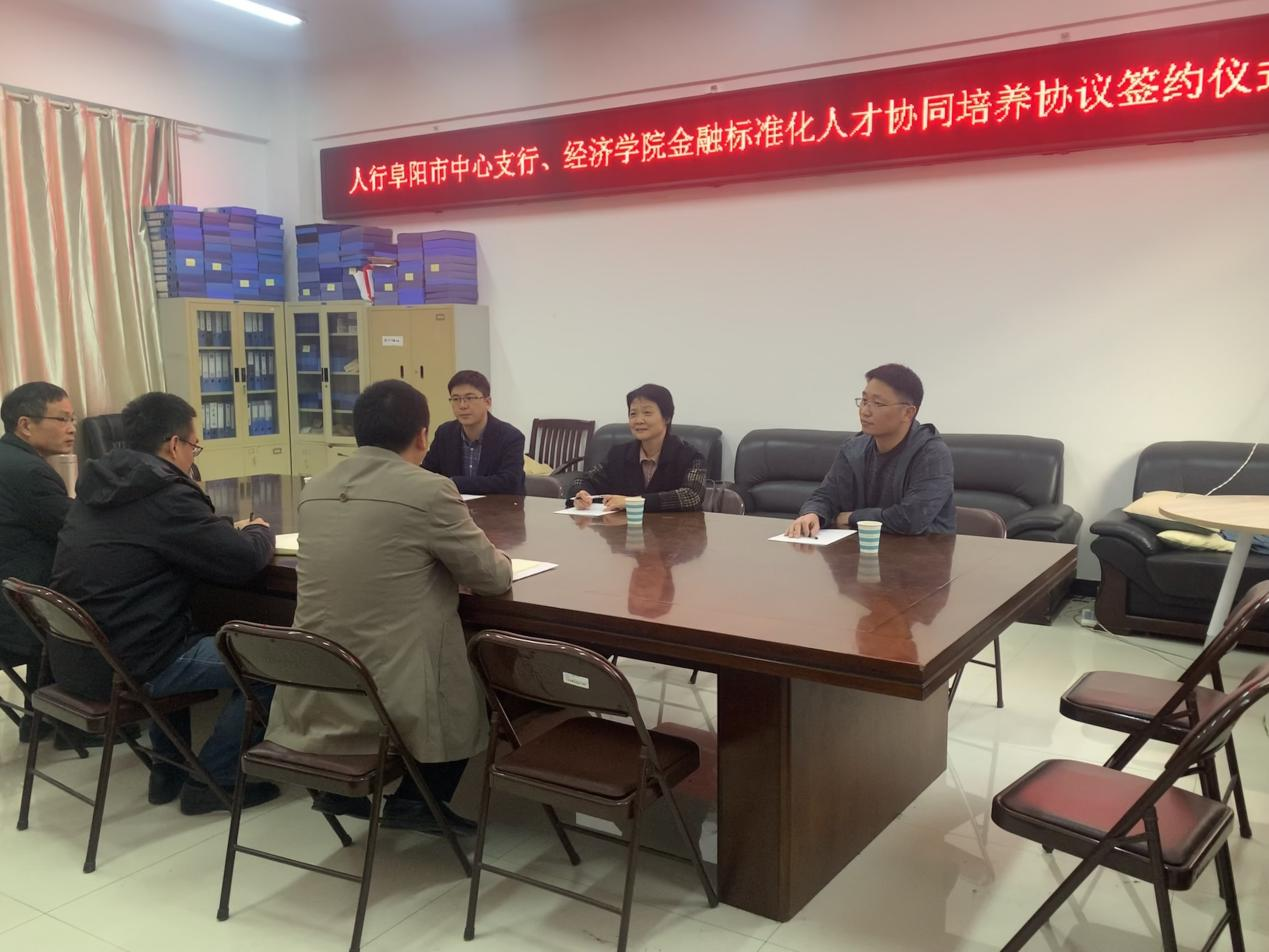 为培养新时代金融标准化人才队伍,助推地方数字经济发展以及政府企业数字化转型,2021年11月17日下午,经济学院与人民银行阜阳市中心支行于汉风B楼323会议室举行了金融标准化人才协同培养协议签约仪式。经济学院党委书记黄琼,副院长余许友,党委副书记孟继超,人民银行阜阳市中心支行副行长张丽莉,科技科科长尚庆军、科技科副科长栾庆忠出席了本次仪式。