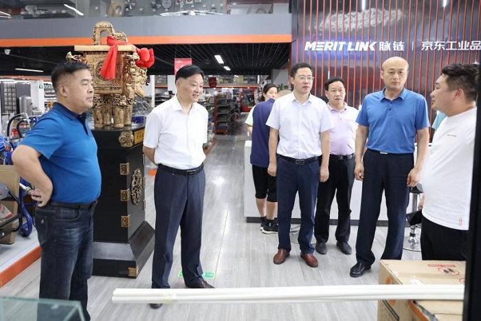 涂红松一行在界首市商务局局长汪向阳、界首市电商办主任李玉华等人陪同下实地参观了安徽逸品库信息科技有限公司、安徽蓝立网络科技有限公司、安徽京脉商贸有限公司等高新区电商基地入驻企业,并与企业负责人进行深入交流,了解电商企业相关发展历程、企业文化以及人才需求等情况。