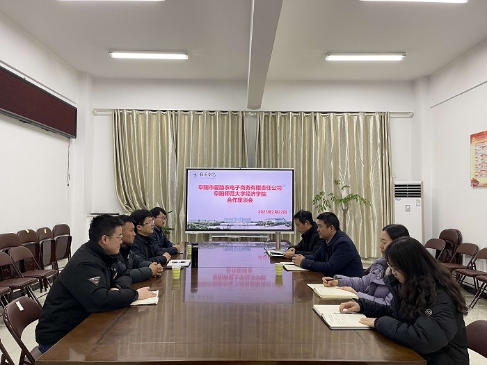 2月22日,为落实中央一号文件,为服务乡村振兴战略寻策问计,全国第五届文明村镇、阜阳市颖东区正午镇吴寨居驻村第一书记黄贤达带领阜阳市爱助农电子商务有限责任公司负责人等一行3人到经济学院调研交流,双方就电商助力乡村振兴进行座谈。经济学院副院长余许友、党委副书记孟继超接待了黄贤达一行。学院毕业班辅导员、就业指导员、团学负责人等参加座谈。