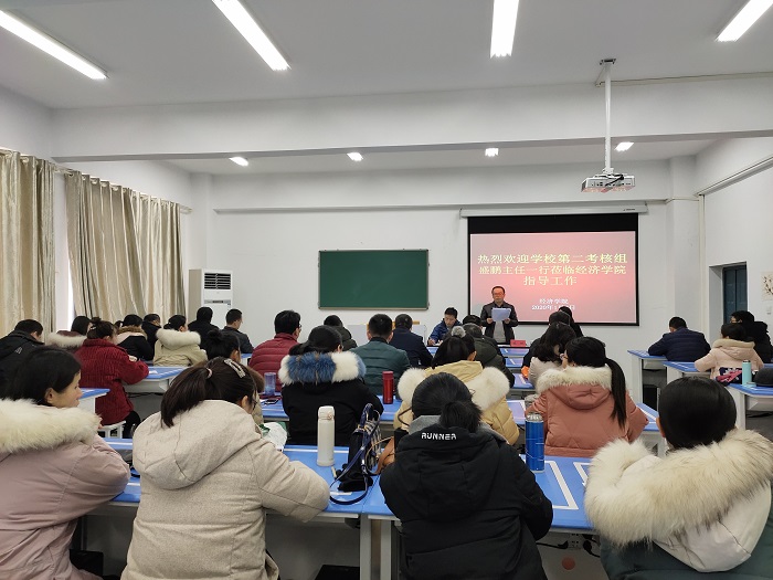 2020年1月2日下午,校党委常委、校办公室主任盛鹏带领第二考核工作组,对经济学院中层领导班子和领导人员进行2019年度综合考核。党委副处级组织员郦丹芸、人事处师资科科长陈勇陪同考核。经济学院党政班子成员和全体教职员工参加了会议。会议由经济学院院长朱剑峰主持。