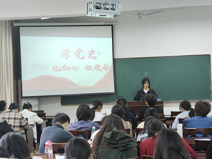 在学员交流汇报环节,8名学生入党积极分子代表以微党课的形式带领学员重温“四史”。