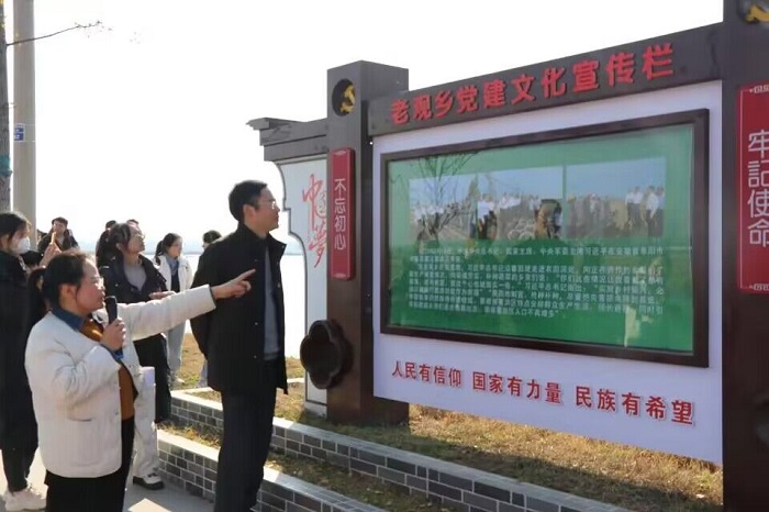 党员们沿着总书记的足迹来到了老官乡芡实种植基地及西田坡庄台。在芡实种植基地,实地感受了王家坝人民牢记总书记嘱托,蒙洼地区因地制宜发展适应性农业,面对困难,勇于尝试,走出一条发展特色经济道路,建设美好家园的自强不息精神;在西田坡庄台,昔日庄台脏乱差,如今村景美如画,庄台街道整洁、村民生活井然有序,党员们进一步感悟到:中国共产党问情于百姓,执政为人民,坚持以“人民为中心”的发展理念。