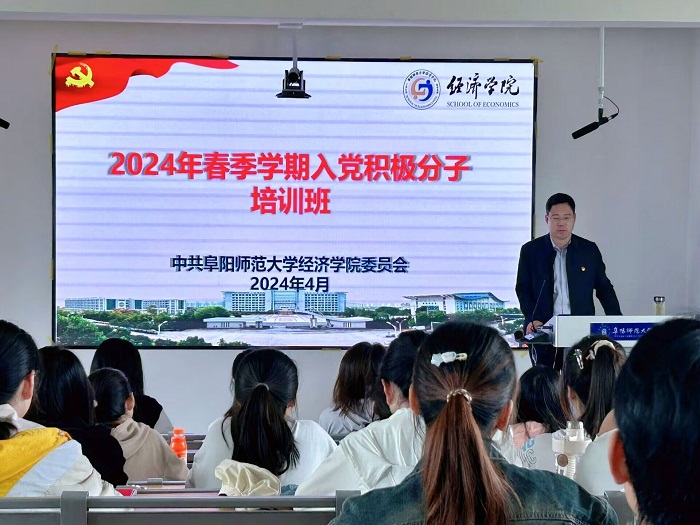 4月20日上午,经济学院2024年春季学期入党积极分子培训班在清河校区外语楼301教室开班。学院党委书记房厚信、院长余许友、党委副书记孟继超参加开班仪式并讲话,本期58名入党积极分子参加培训。开班仪式由学院专职组织员李雪艳主持。