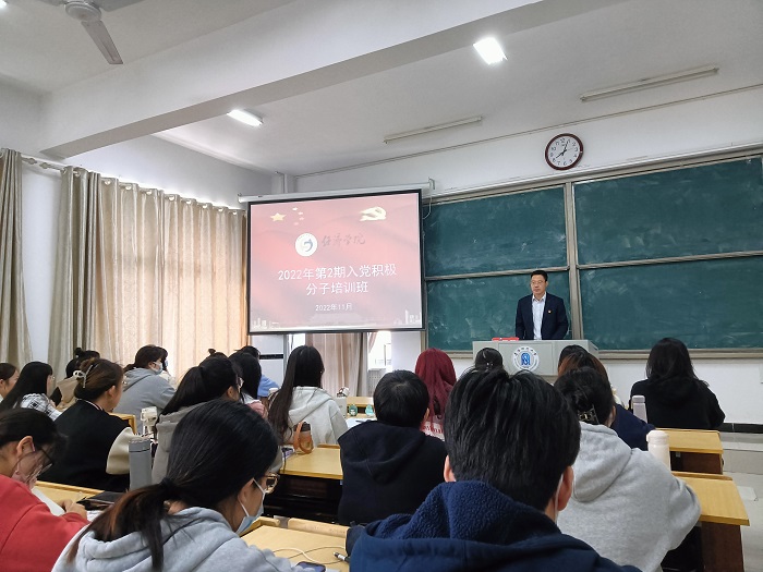 为加强入党积极分子党性修养,提高思想觉悟,筑牢信仰之基,严把党员入口关,切实保障党员发展质量,11月6日,经济学院举办2022年第2期入党积极分子培训班,经济学院党委书记房厚信作开班动员,102名入党积极分子参加培训。