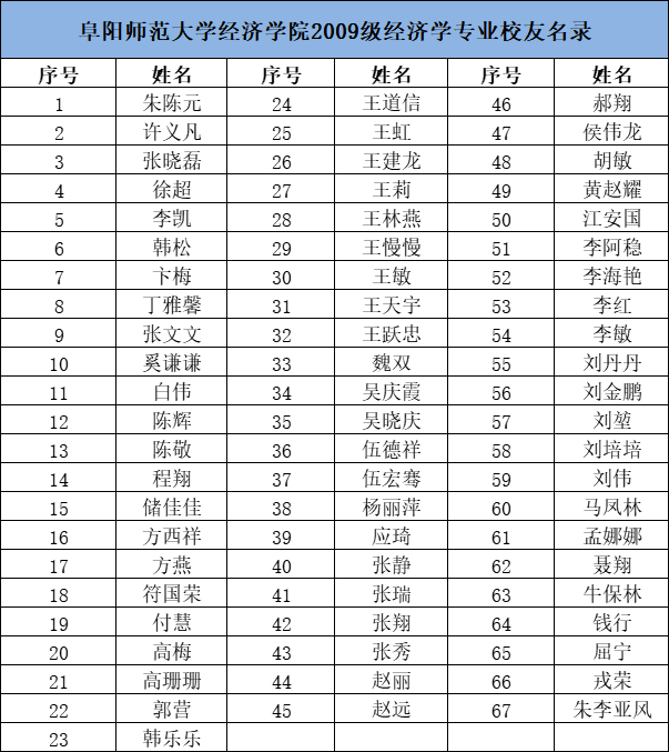 阜阳师范大学经济学院2009级经济学专业校友名录