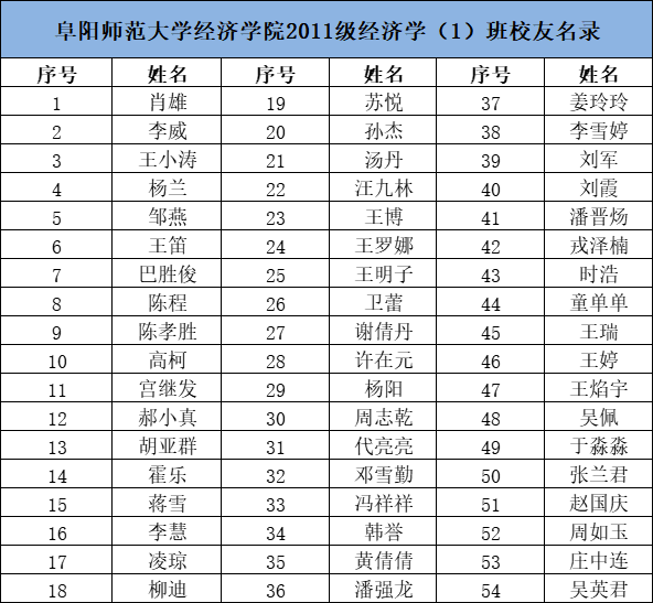 阜阳师范大学经济学院2011级经济学(1)班校友名录