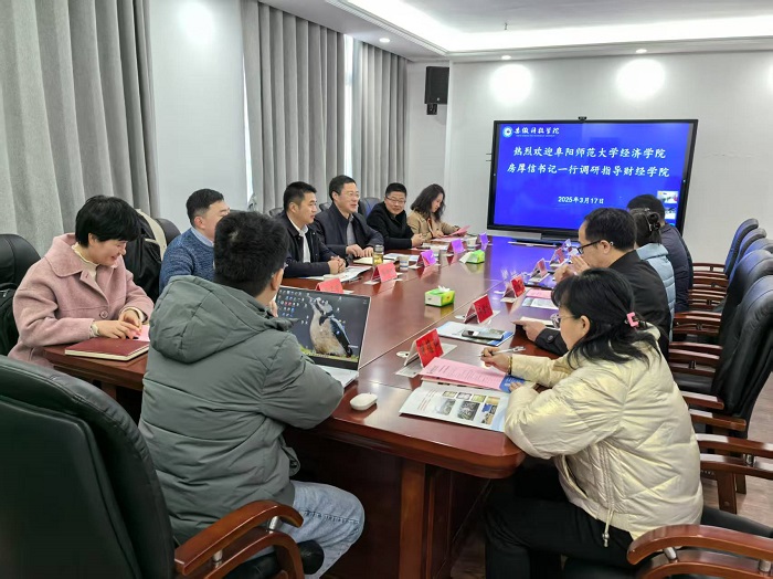 为做好经济学院教育教学审核评估工作,3月17日,经济学院党委书记房厚信、院长余许友一行6人赴安徽科技学院财经学院走访调研。双方就本科教育教学审核评估、实验实训场地建设、产学研合作等方面进行了深入交流。