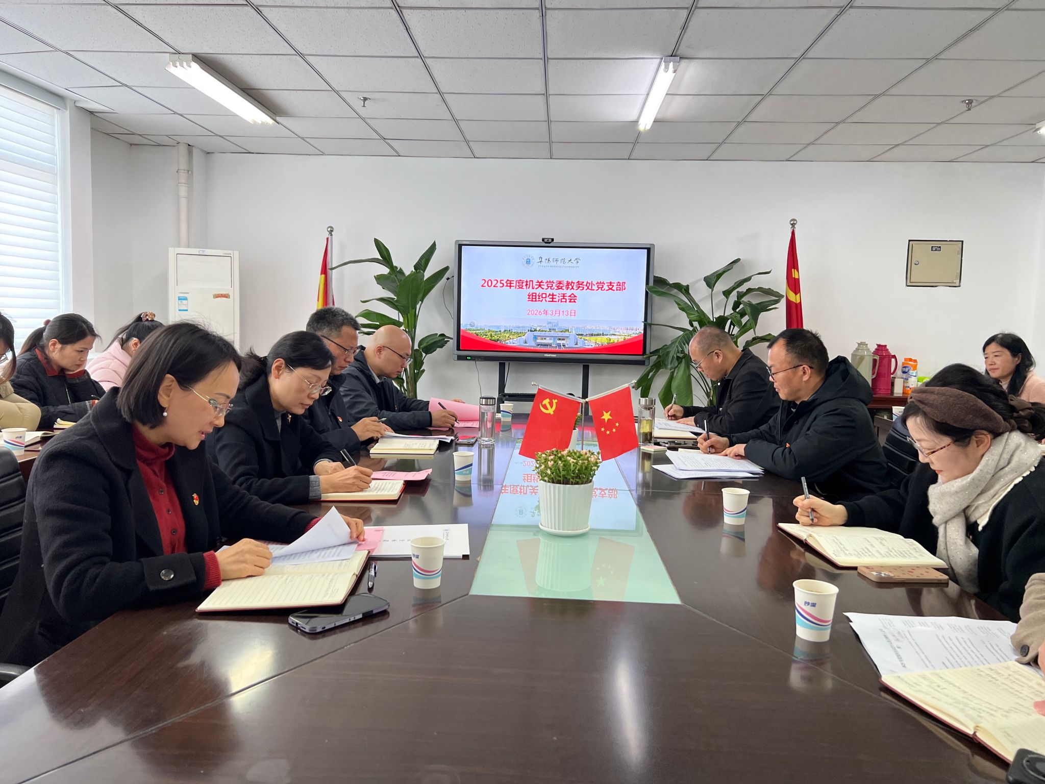 3月13日上午,教务处党支部在正行楼910会议室召开2025年度组织生活会。校党委常委、副校长黄云志参加会议。机关党委书记辛卫民到会指导。